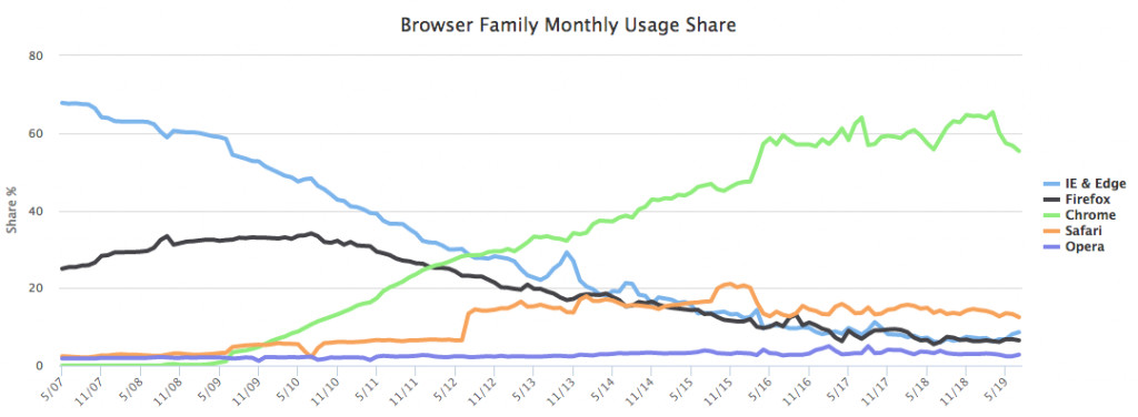Google Chrome has been the world’s top web browser since roughly late 2012, and has only grown in popularity since: